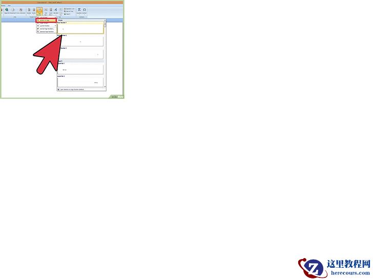选择“页码”来设置编号。你有很多选择来设置页码的位置,包括部分艺术字。