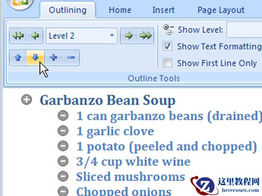 使用Word 2007中的“大纲”视图,您可以随着主题的思考过程变得井井有条,将主题随机排列并重新组织。要移动主题,可以使用“上移”或“下移”按钮或鼠标。