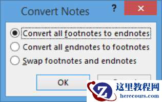 如果您同时使用了脚注和尾注,并且现在想对其进行补救,或者如果要在使用另一种注记之间进行切换,则Word可以很容易地做到这一点。