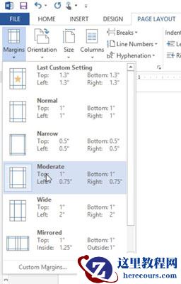 按Ctrl + N可基于“普通”模板(具有默认设置的空白文档)启动新文档。选择页面布局→页边距→中度以更改文档页边距。