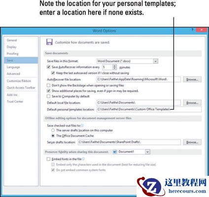 选择“文件”→“选项”,单击“保存”,然后在“默认个人模板位置”文本框中记下该位置。然后单击“确定”关闭对话框。如果“默认个人模板位置”文本框中没有条目,请输入要用于模板的位置。例如,您可以为此目的在“文档”文件夹中创建“自定义模板”文件夹。除非此文本框中列出了位置,否则您将无法访问保存的模板。