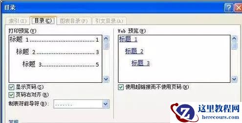 步骤二:打开“目录”对话框,根据实际情况设置相应的选项,如果运用系统默认的选项,则可直接单击“确定”按钮,如图所示。