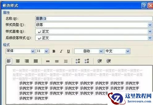 步骤五:单击“修改”按钮,打开“修改样式”对话框,根据实际需要进行设置,单击“确定”按钮,如图所示,即可显示出新的目录样式。