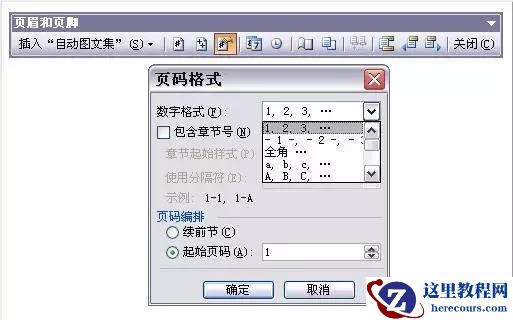 页眉和页脚格式化—设置页码格式 在“页码格式”对话框中,有多种表达方式,如阿拉伯数字、英文字母、中文数目字等。