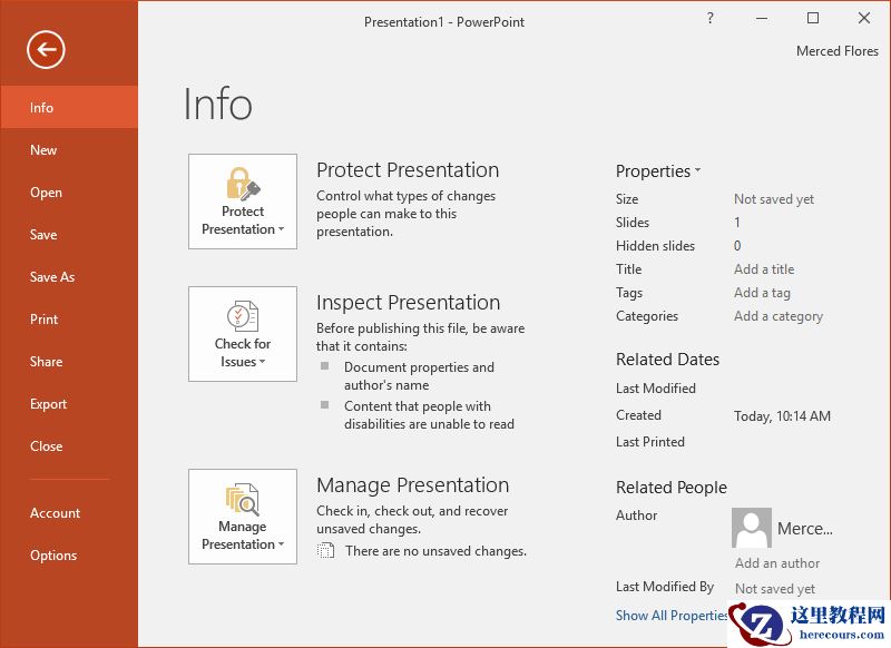 在功能区和快速访问工具栏上,您可以找到在PowerPoint中执行常见任务的命令。Backstage视图提供了用于保存,打开文件,打印和共享文档的各种选项。