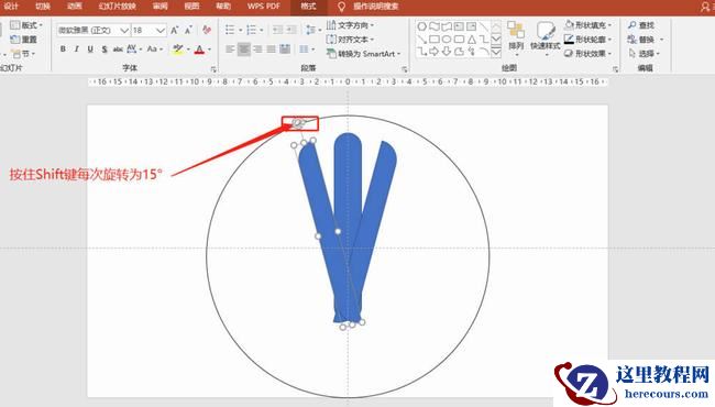 5、按住Shift键,旋转图形角度15°,并放置如图: