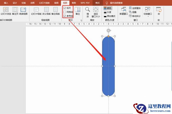 2、打开网格线,并将圆角矩形居中。如图: