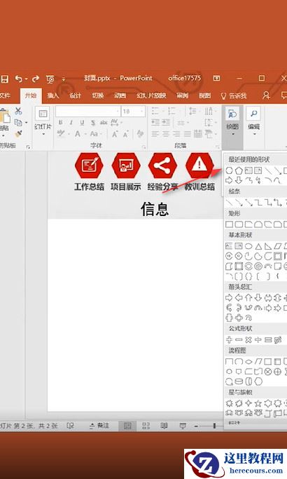 1、在PPT中点击“开始——绘图”,选择一个“六边形”的形状。