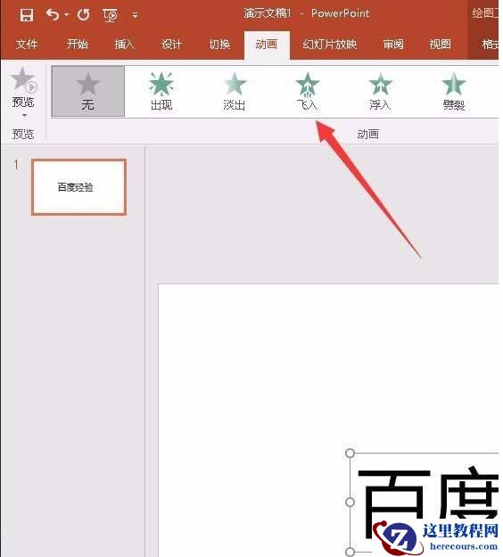 三、选择【动画】菜单——飞入