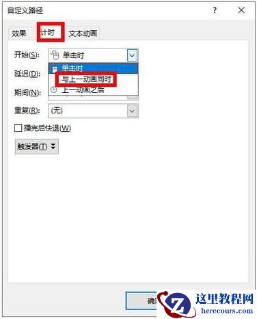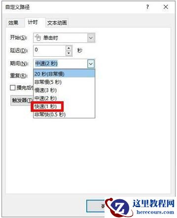 8、还可以设置如何开始动画,如果选择”单击时“,必须单击才能开始动画,可以设置为”上一动画之后“就免去了频繁单击的麻烦。还可以设置动画跳跃的速度。