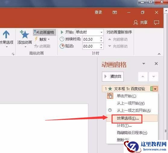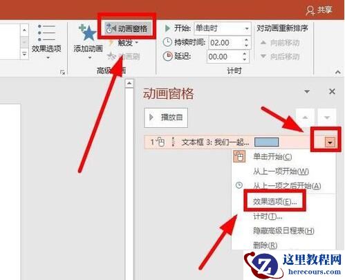 五、在【动画窗格】中,选择文本框列表项目,右键选择【效果选项】。
