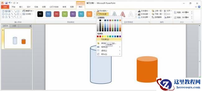 1、打开PPT,从“形状”中插入一个圆柱形。