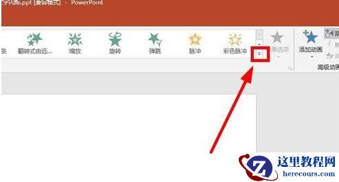 2、点击”动画“选项卡下动画的”其他“按钮(旁边向下的小三角)