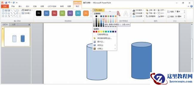 3、选中第一个圆柱形设置淡一点儿的填充颜色,作为玻璃杯。