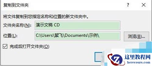 最后点击“复制到文件夹”,在打开的对话框中设置导出的保存位置,点击“确定”。