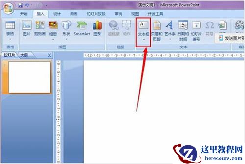 4、在“插入”的选项中,找到文本选项框,点击如下图所示的“文本框”。