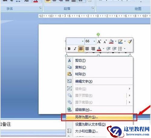 7、输入完成后选中文字然后单击鼠标右键,出现如下图所示下拉菜单,选择“另存图片为”。