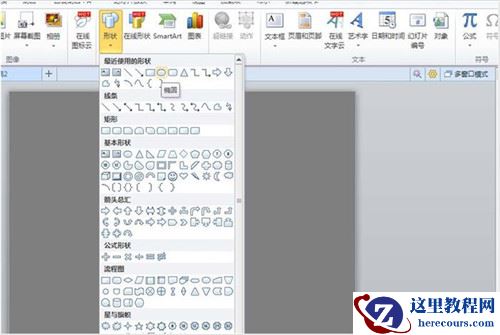2、执行插入-形状命令,选择椭圆,并绘制一个正圆。