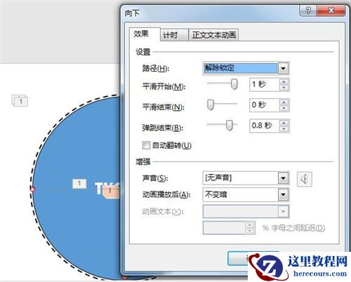 2、对应GIF图片可以看出,先绘制一个实心圆,并给它一个向下的【飞入】,并设置回弹,这个回弹很重要看起来有感觉。