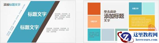左边:不规则的色块与文字相结合很是提神,由于色块角度的倾斜打破了习惯性视觉,在提神的同时也会给浏览者造成一定的不适,建议在PPT页面排版中零星使用。