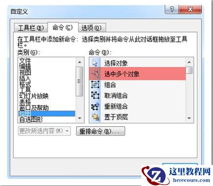 操作如下:工具——自定义——命令——绘图——选中多个对象,鼠标单击“选中多个对象”不放并拖动其到工具栏后选择一个位置松开鼠标即可使用。