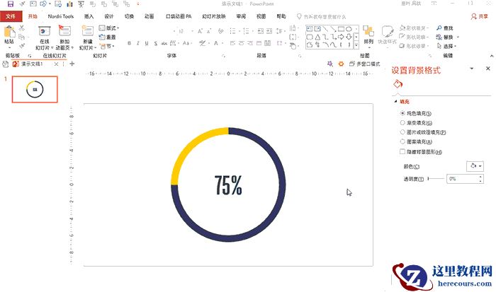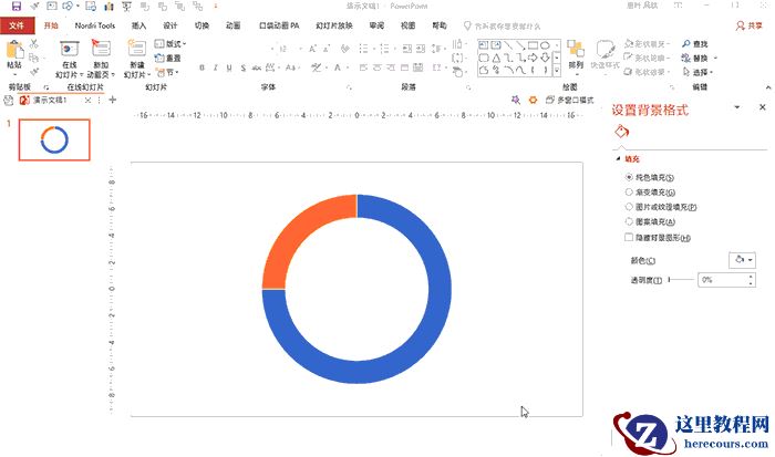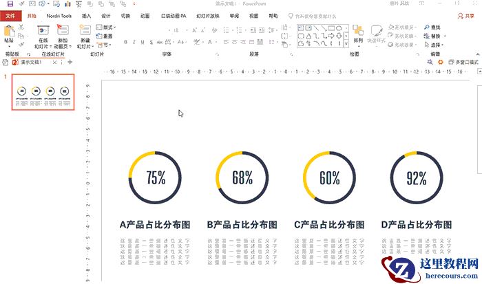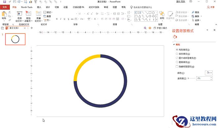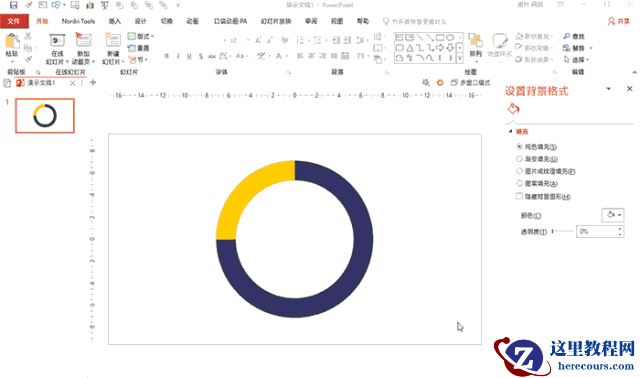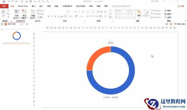 类似这样的扁平风圆环图,在日常PPT制作中不在少数。其实制作起来也很简单。