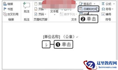 打开原始文件,单击要插入日期的位置,在“插入”选项卡下单击“日期和时间”按钮,如下图所示。