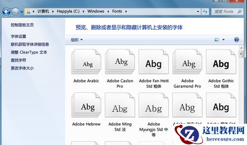 2、进入到控制面板后,依次展开:外观和主题 - 字体 - 字体设置;