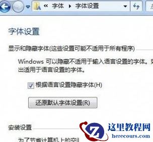 3、点击图中的还原默认字体设置就行了。