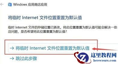 5、完成之后点击“将临时Internet文件位置重置为默认值”。