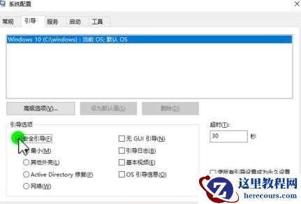 2、选择【引导】选项卡,勾选【安全引导】后点击【确定】按钮。