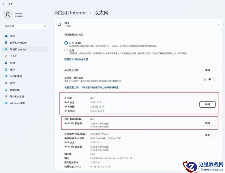 2、选择需要编辑的选项,如果需要编辑IP地址,选择IP地址后面的编辑按钮,如果需要编辑DNS,则选择DNS地址后面的编辑按钮,两个编辑按钮都可以选择。