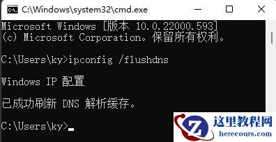 2、命令提示符窗口中,输入并按回车执行【ipconfig /flushdns】 命令,成功就会提示:已成功刷新 DNS 解析缓存;