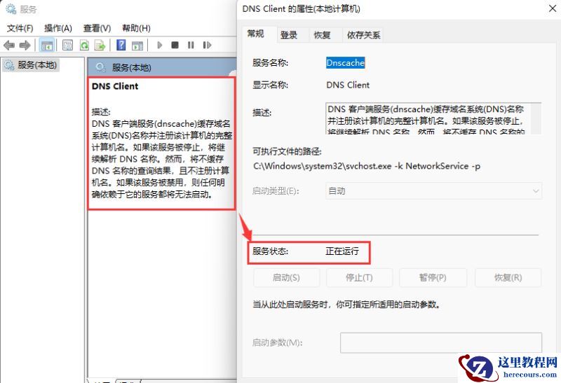 4、如果在执行【ipconfig /flushdns】命令的时候,提示无法刷新 DNS 解析缓存:执行期间,函数出了问题,一般是本地的 DNS Client 服务没有正常启动导致的。运行中,打开服务(services.msc),找到名称为【DNS Client】的服务,重新启动即可。