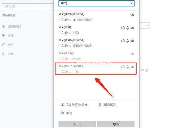 5.点击进入“添加语言”选项,将“中文简体”添加到系统当中:
