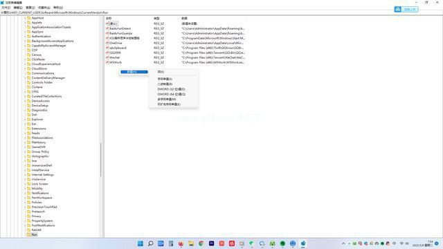 2.按照以下路径依次打开HKEY_CURRENT_USER\Software\Microsoft\Windows\CurrentVersion\Run