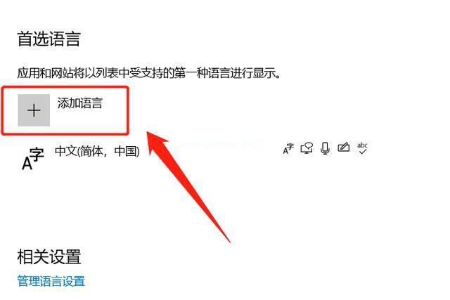 4.点击“语言”选项后,在弹出的界面里找到“添加语言”选项: