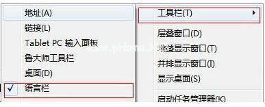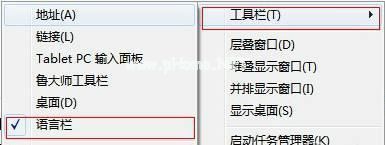 那就用鼠标在任务栏任一空白处单击一下右键,然后选择“工具栏——语言栏”即可。
