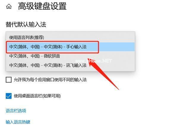 9.点击进入“高级键盘设置”选项以后,选中自己下载的输入法: