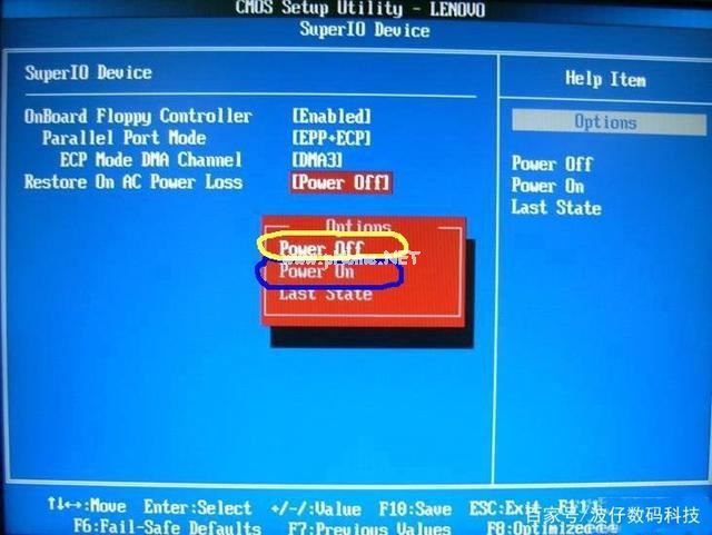 将BIOS中“POWER MANAGENT SETUP”的“Restore ac power loss”设置为“Disabled”。