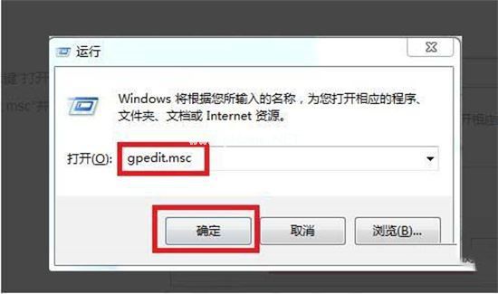 1、同时按下“win+R键”打开电脑中的运行,在里面输入“gpedit.msc”并点击确定。