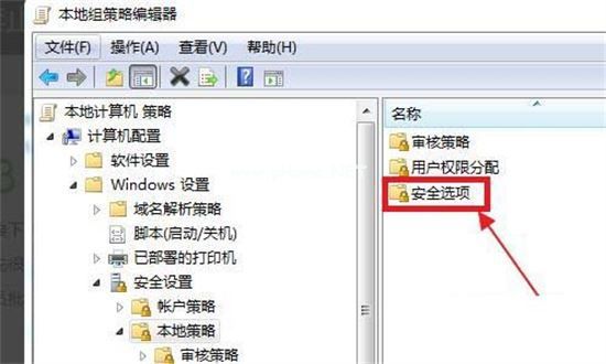 2、在本地组策略编辑器中找到“windows设置”并点击,打开“安全设置”,然后找到“本地策略”并点击。