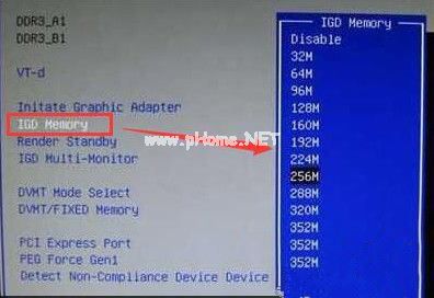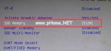 2、然后在弹出的窗口中,选择“IGD Memory”按回车即可,如下图所示: