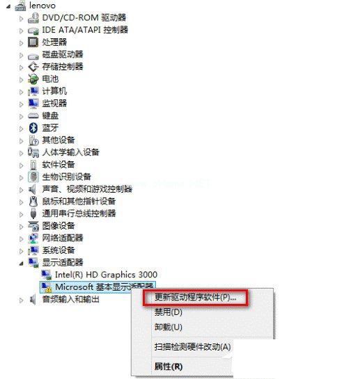 显卡设备会在这里显示。若没有安装驱动或是驱动程序有问题,此处会显示带问号或叹号设备或显示为“标准VGA视频设备”(Win7系统)或“microsoft基本显示适配器”(Win8及以上系统)。若这些均没有,尝试进入BIOS,按F9恢复默认,再按F10保存,重启电脑再尝试。
