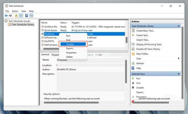 3、右键单击任何强制PC关闭或重新启动的任务,然后选择禁用。