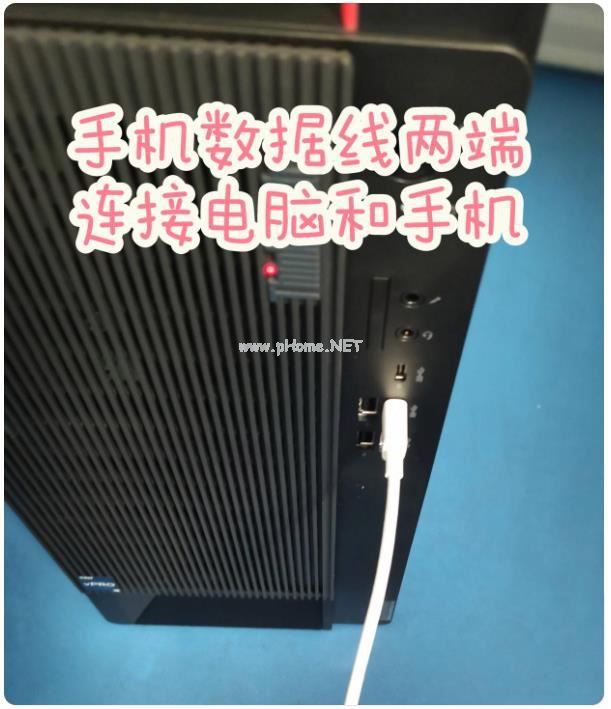 1.使用手机自带的充电线,USB接口插入电脑主机上,另一头正常插入手机上(使用数据线连接也可以实现手机和电脑之间快速传递文件、图片),手机会提示“充电、传输文件、传输照片”,选择“仅充电”就好;
