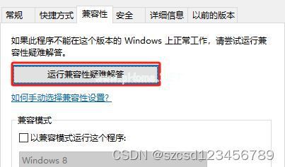在属性对话框中,切换到“兼容性”选项卡。