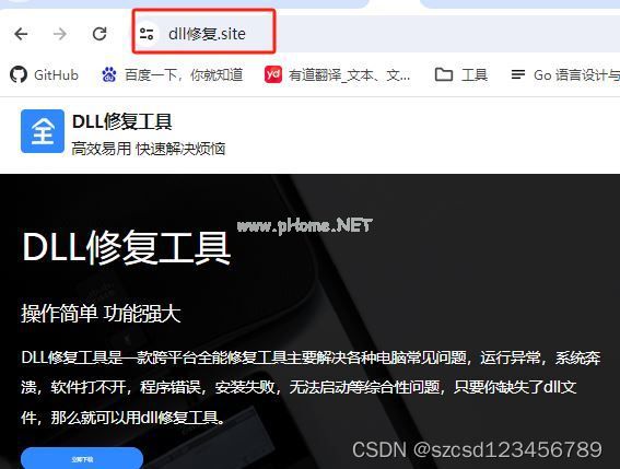 如果不下载上面的软件,也可以可以在浏览器顶部输入:dll修复.site ,从而获得这个工具。