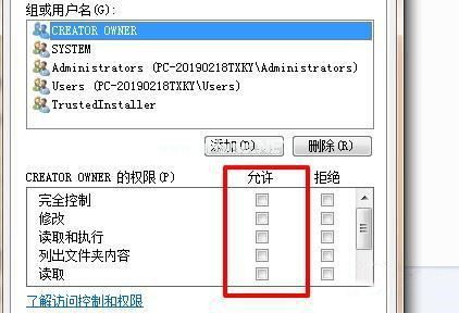 3、在组或用户名中勾选“CREATOR OWNER” 按下回车确定。