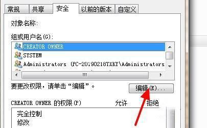 2、在弹出的窗口中点击“安全”选项栏,并点击下方的“编辑”。